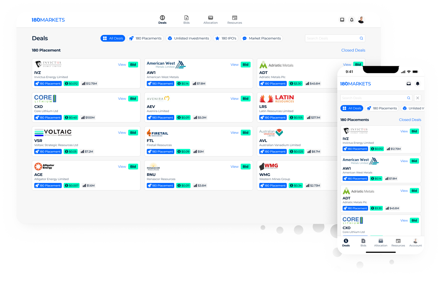 180 Markets flips the power around 180 degrees! In the past, share placements were only reserved for investment funds. With 180 Markets this is no longer the case. We give our investors the power by providing access to our partner’s placements at your fingertips.